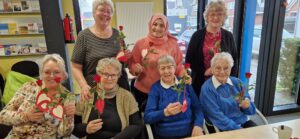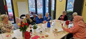 En tijdens het knutselen met koffie en een lekkere koek erbij hebben we gepraat over liefdes van vroeger en nu;  liefde van kleinkinderen voor oma’s en opa’s én liefde en interesse voor elkaar als vriendinnen of noabers.